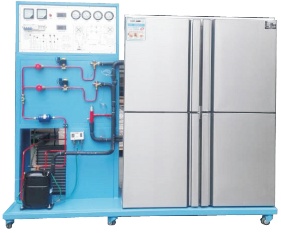一機(jī)二庫(kù)實(shí)訓(xùn)裝置是專門用于職業(yè)技術(shù)學(xué)院制冷專業(yè)進(jìn)行實(shí)訓(xùn)和實(shí)驗(yàn)。一機(jī)二庫(kù),是指利用一臺(tái)制冷機(jī)組,同時(shí)向兩個(gè)需要不同庫(kù)溫的庫(kù)房供應(yīng)冷量。
