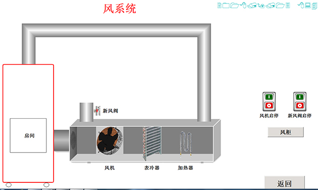 3),系統故障運行演示:在配置有實物中央空調實訓考核裝置時,在軟件演示故障時系統動畫與實物實時故障同步,讓學生更好地撐握空調原理、操作方法,如壓縮機系統、制冷系統、制熱系統、風系統、集中送風系統、半集中送風系統的原理過程。