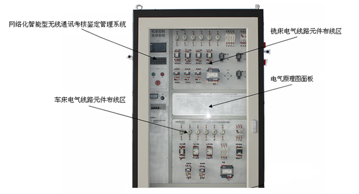 控制柜主體上安裝各種機床電氣元件操作區、機床電氣線路元器件布線區面板、電動機模擬單元。