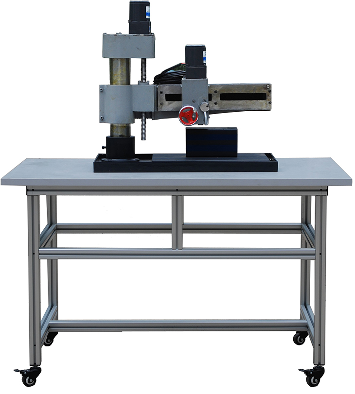 智能型四合一機床半實物仿真模型放置在工作桌上。智能型四合一機床半實物仿真模型是參照智能型四合一機床的尺寸按照一定比例縮小設計;半實物機床上所有電氣元件電壓等級與實際的機床完全相同;半實物機床的床身采用鑄件;滾軸絲杠傳動;手輪使用實際機床部件,貼近真實機床;機床活動導軌表面采用高頻淬火工藝,經久耐用。