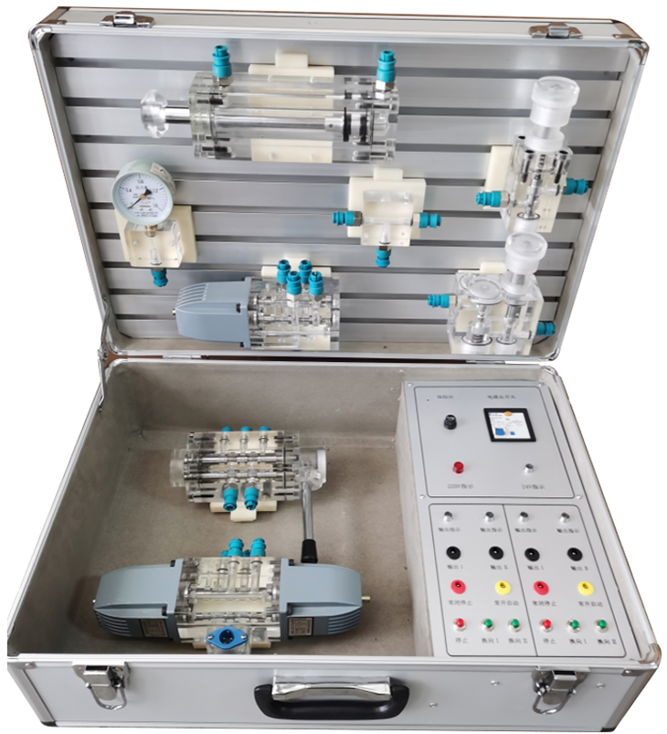 3、箱子集元件元件、液壓泵站、調(diào)速電機及電氣控制部分為一體箱,教師可方便的將設(shè)備帶入課堂進(jìn)行現(xiàn)場演示教學(xué)和實物講解。