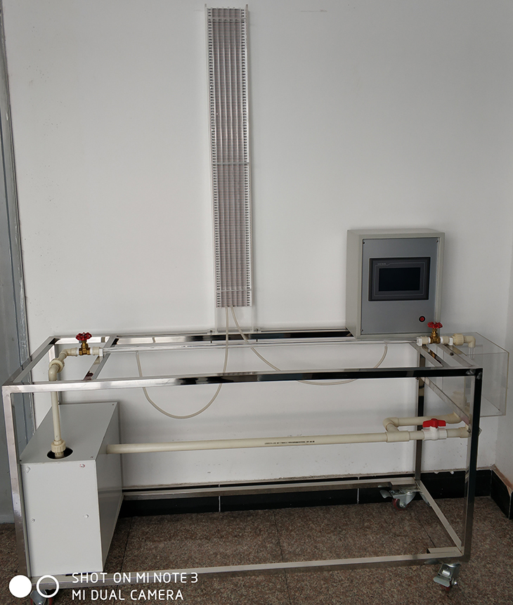 仿真演示軟件;能讓學生在電腦上更直觀地觀看模擬動態實驗,比如可以做成動畫軟件。儲水箱、上水管、溢流管、整流柵、溢流板、溢流箱、取壓管、閥門、差壓傳感器、溫度傳感器DS18B20、回水箱、計量箱、回水管;移動式不銹鋼實驗臺;7寸觸摸顯示屏、流量數顯裝置、控制箱;