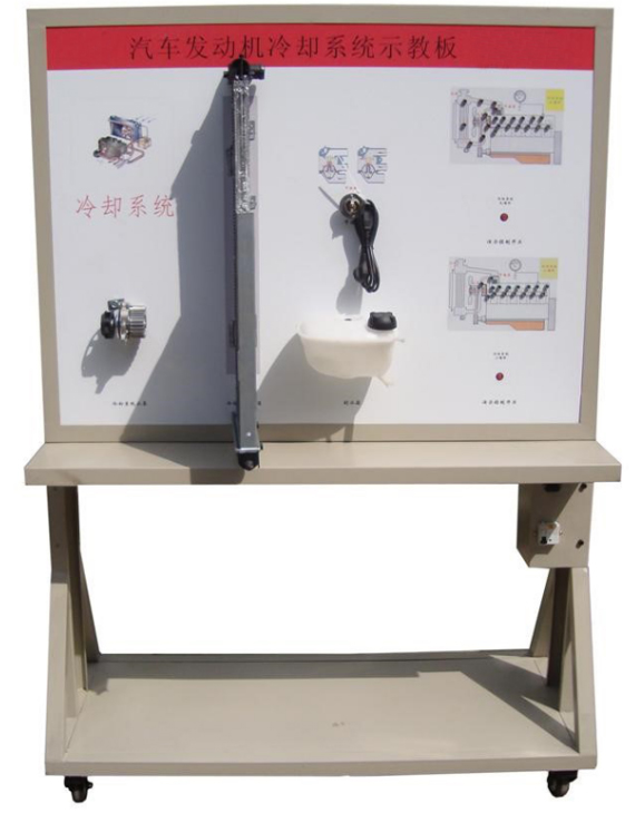 2.示教板面板采用耐創(chuàng)擊、耐污染、防火、防潮的高級鋁塑板,表面經(jīng)特殊工藝噴涂底漆處理;面板打印有永不褪色的彩色電路圖與工作原理示意圖;學(xué)員可直觀對照發(fā)動機冷卻系統(tǒng)結(jié)構(gòu)原理圖和實物,認(rèn)識和分析發(fā)動機冷卻系統(tǒng)的工作原理。