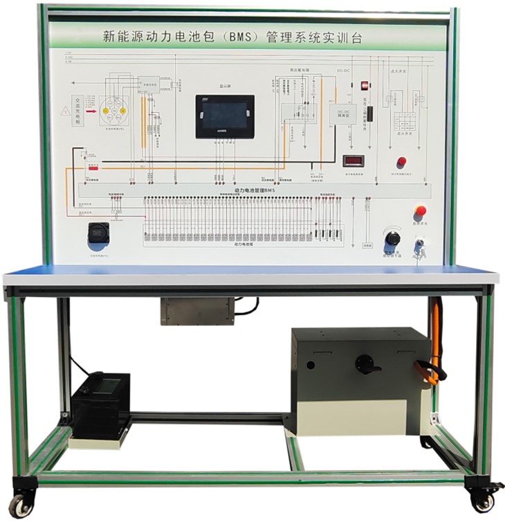選用新能源車輛磷酸鐵鋰動(dòng)力電池包,單體電池(3.2V20AH,共24串),帶CAN總線的一體機(jī)BMS電池管理系統(tǒng),有被動(dòng)均衡功能;真實(shí)地呈現(xiàn)了磷酸鐵鋰動(dòng)力電池包核心零部件之間的連接控制關(guān)系、安裝位置和運(yùn)行參數(shù),以及高壓系統(tǒng)安全注意事項(xiàng),并培養(yǎng)學(xué)員對(duì)磷酸鐵鋰動(dòng)力電池包(BMS)故障分析和處理能力。適用于了解與驗(yàn)證電動(dòng)汽車的動(dòng)力電池參數(shù)進(jìn)行實(shí)時(shí)監(jiān)控、故障診斷、SOC估算、短路保護(hù)、絕緣檢測(cè)、充放電控制、均衡等功能,并通過CAN總線的方式與帶CAN通訊的車載充電機(jī)進(jìn)行信息交互,保障電動(dòng)汽車高效、可靠、安全運(yùn)行的BMS教學(xué)實(shí)訓(xùn)實(shí)驗(yàn)。