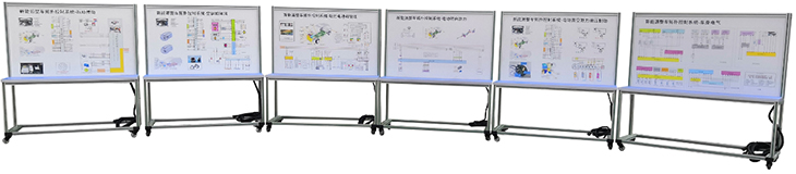 汽車檢測實訓臺面板采用 ≥ 4mm 厚耐腐蝕、耐創(chuàng)擊、耐污染、防火、防潮的高級鋁塑板,表面經特殊工藝噴涂底漆處理;面板打印有永不褪色的彩色電路圖;學員可直觀對照電路圖和原車實物,認識和分析各控制系統(tǒng)的工作原理。