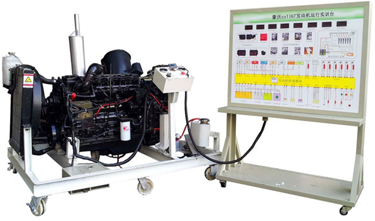 豪沃zz1167發動機運行實訓系統以翻新 豪沃zz1167汽車國三原廠柴油發動機總成。及運行附件為主體部件,發動機可起動運行,進行起動、加速、減速、故障檢測與診斷、故障模擬與排除等工況的實際操作,真實展示柴油發動機結構與原理及工作過程。