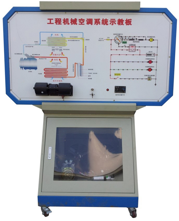 2.由三相電機(jī)做為動(dòng)力源,帶動(dòng)空調(diào)壓縮機(jī)工作。操作空調(diào)控制面板,可真實(shí)演示車輛空調(diào)系統(tǒng)的工作過(guò)程以及工作原理。